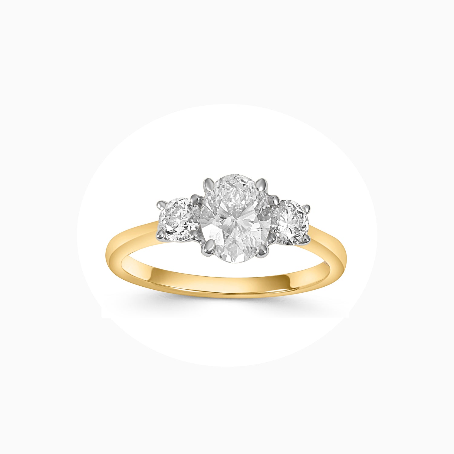 18CT Gold Oval with Pear Cut Diamonds Trilogy Ring